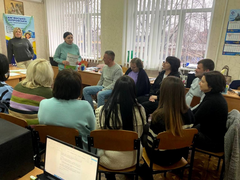 Працівниками виконавчого комітету Кам’янсько-Дніпровської міської ради протягом листопада-грудня успішно пройдено навчання в рамках проєкту "Реагування на безпекові виклики у прифронтовому місті, формування навичок у різних груп населення поведінки в екстремальних умовах, першій домедичній допомозі та мінної безпеки", що проводився благодійною організацією "Благодійний фонд "Позитивні Жінки Запоріжжя" за підтримки Уряду Об'єднаного Королівства Великої Британії та Північної Ірландії в рамках проекту "Жінки, мир, безпека: відповіді на виклики війни, що впроваджуються Українським Жіночим Фондом.