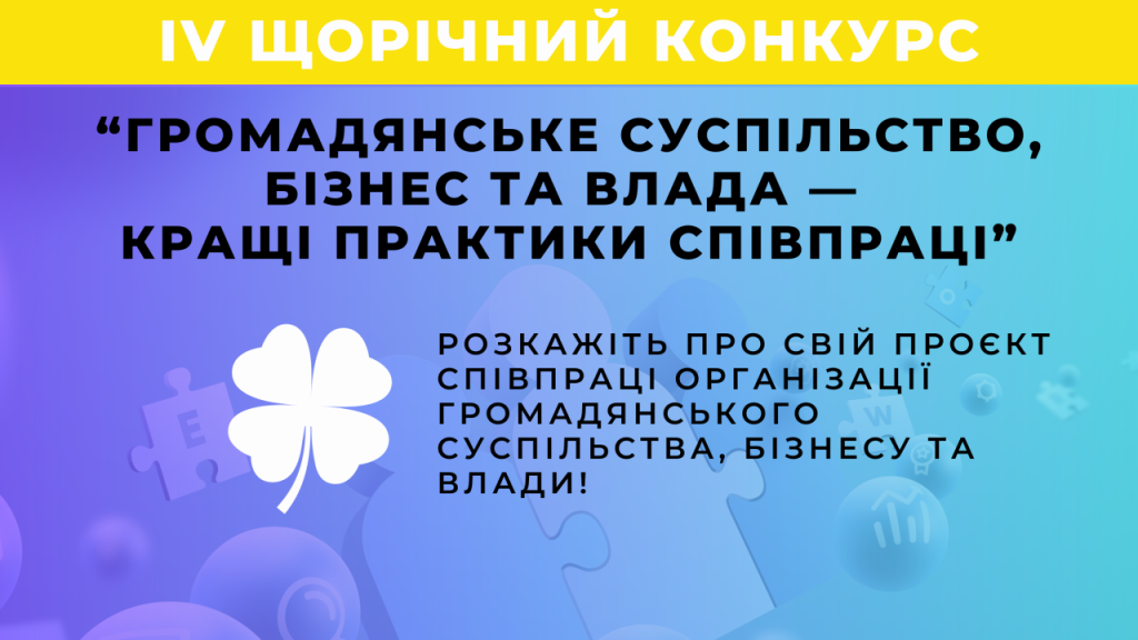 IV ЩОРІЧНИЙ КОНКУРС ІСТОРІЙ «ГРОМАДЯНСЬКЕ СУСПІЛЬСТВО, БІЗНЕС ТА ВЛАДА – КРАЩІ ПРАКТИКИ СПІВПРАЦІ»