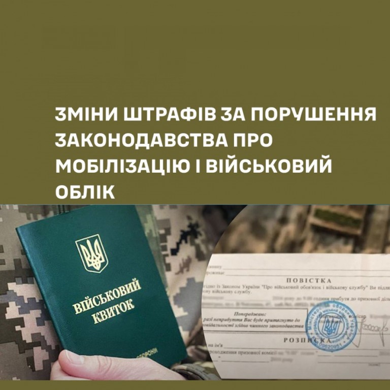 ЗМІНИ ШТРАФІВ ЗА ПОРУШЕННЯ ЗАКОНОДАВСТВА ПРО МОБІЛІЗАЦІЮ ТА ВІЙСЬКОВИЙ ОБЛІК