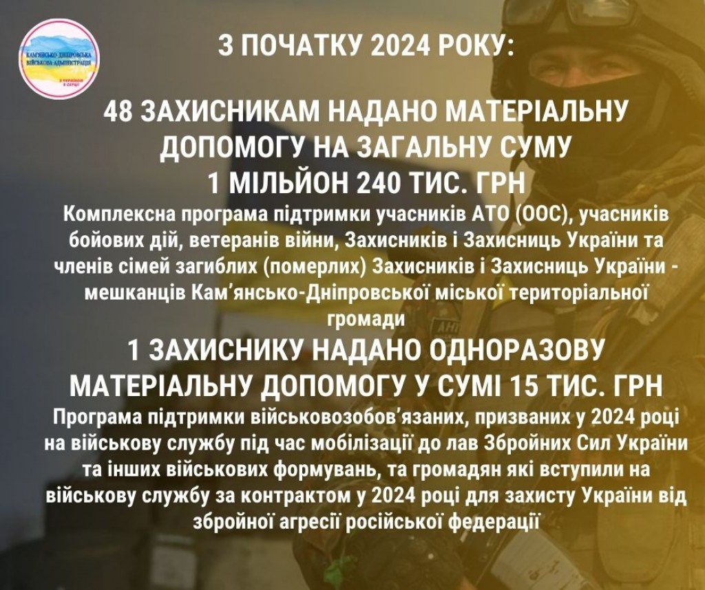 🤝 Для підтримки наших захисників у Кам’янсько-Дніпровській громаді діють 2 програми:1️⃣ Комплексна програми підтримки учасників АТО (ООС), учасників бойових дій, ветеранів війни, Захисників і Захисниць України та членів сімей загиблих (померлих) Захисників і Захисниць України - мешканців Кам’янсько-Дніпровської міської територіальної громади;2️⃣…