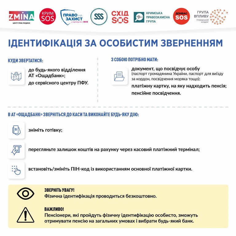 ❗️Якщо ви ВПО, перемістилися до 24 лютого 2022 року та отримуєте пенсію в АТ «Ощадбанк», встигніть пройти ідентифікацію! Це можна зробити навіть за допомогою відеозв’язку.