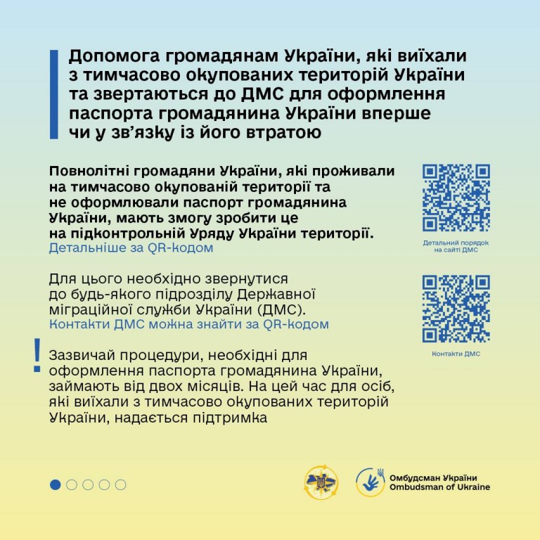 УКРАЇНЦЯМ З ТОТ НА ПЕРІОД ОФОРМЛЕННЯ ВТРАЧЕНИХ ПАСПОРТІВ НАДАЄТЬСЯ КОМПЛЕКСНА ДОПОМОГА