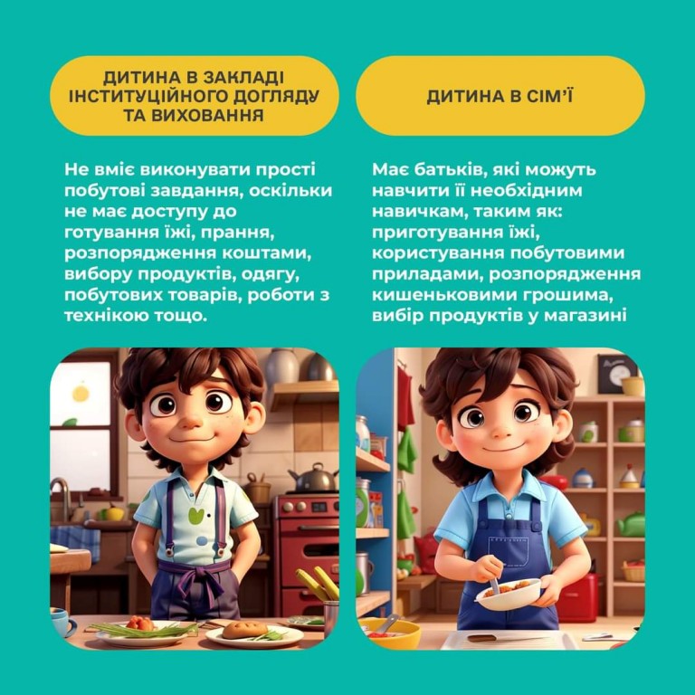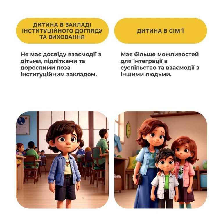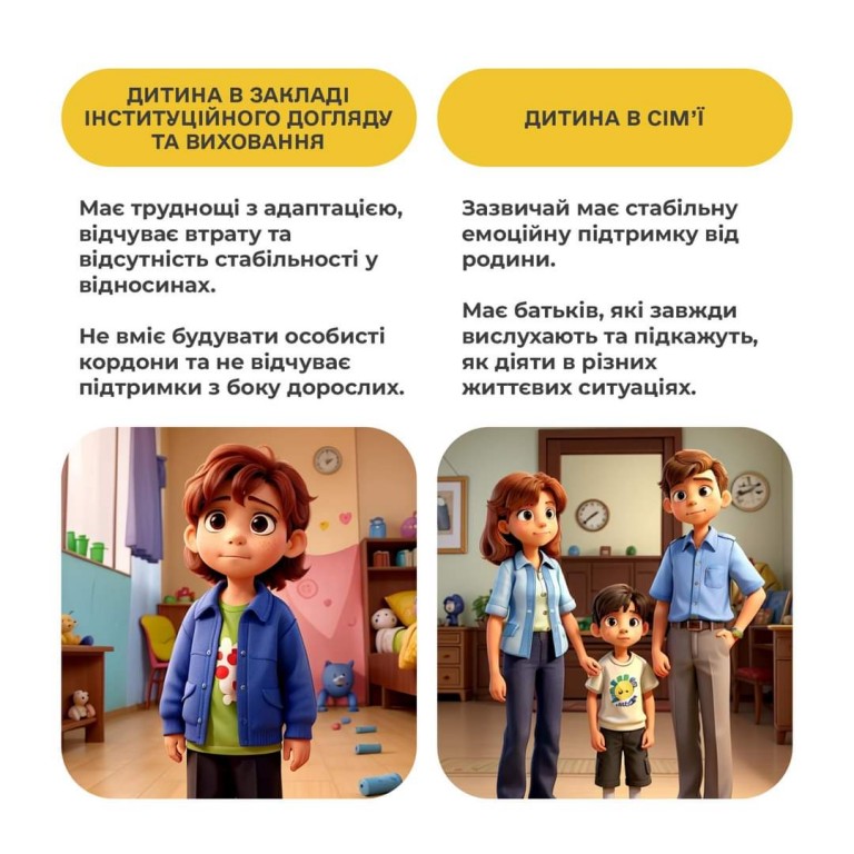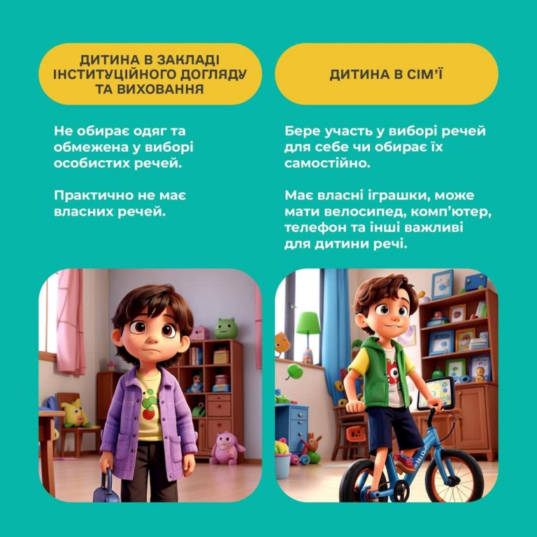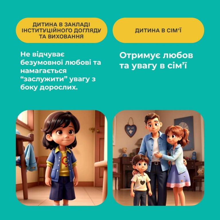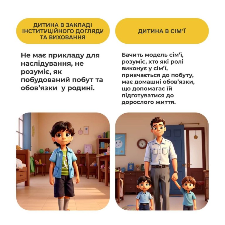 У дописі показано, наскільки відрізняється життя дитини в інституційному закладі та в сім’ї, що ще раз доводить — кожній дитині потрібна родина