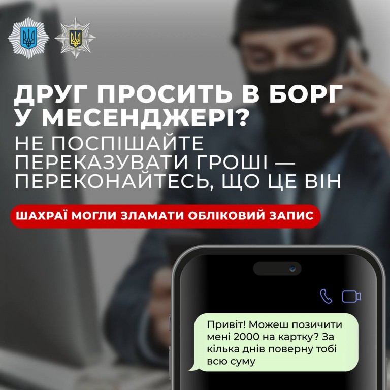 «Привіт! Позич, будь ласка, гроші», — таке повідомлення ви можете отримати від друга у месенджері. Не поспішайте переказувати гроші — шахраї могли зламати його обліковий запис ❌➡️Переконайтесь, що це він. Поставте кілька питань для уточнення або зателефонуйте.👉Це одна з найбільш поширених схем, яку використовують шахраї. Так, нещодавно на…
