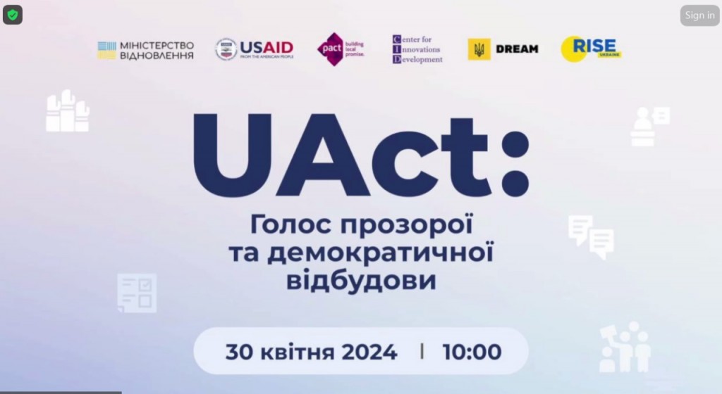 📅 Сьогодні, 30 квітня, Центром розвитку інновацій спільно з Мінрозвитку громад, територій та інфраструктури України, за участі Проєктного офісу DREAM та коаліції RISE Ukraine було проведено захід, під час якого відбулася публічна презентація прототипу платформи електронної участі для відновлення та розвитку “UAct: Голос прозорої та демократичної відбудови”.🔵 У межах…