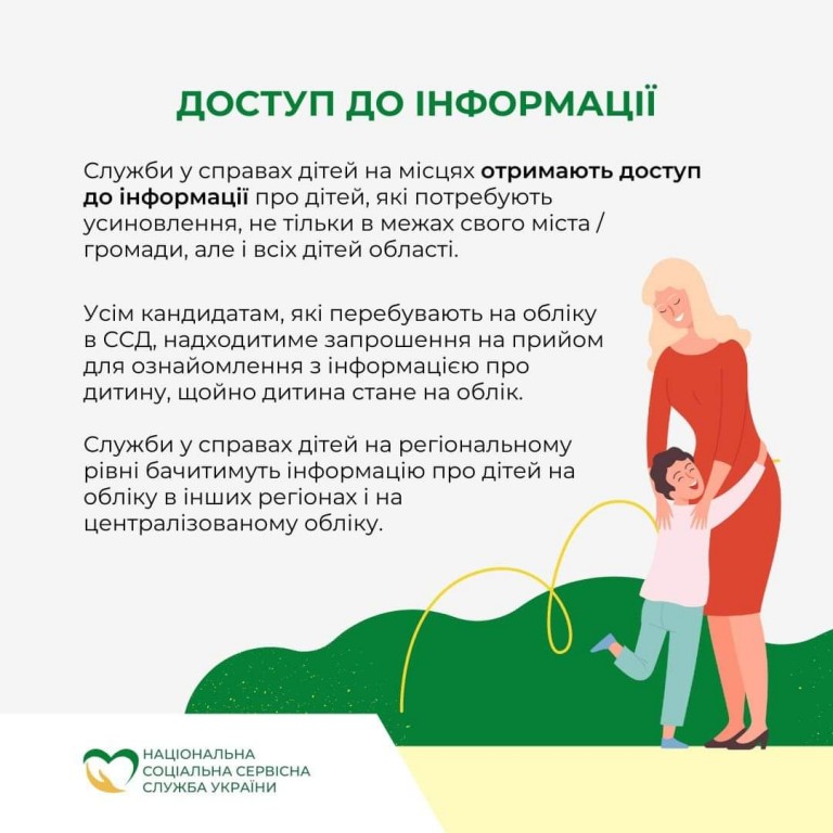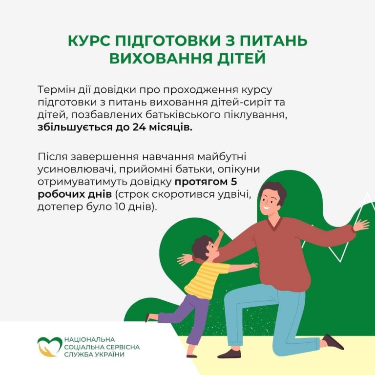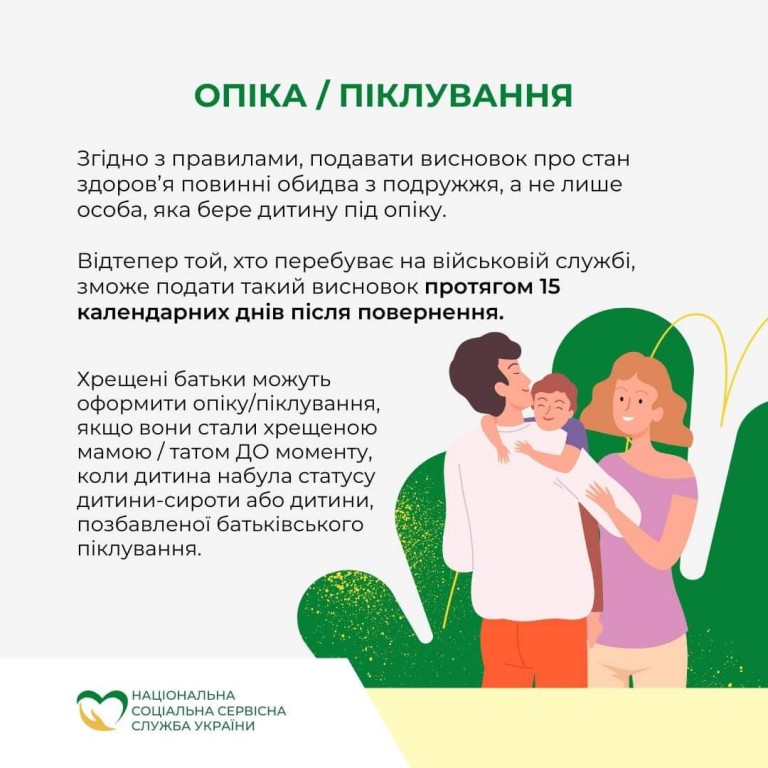 🔍 Зокрема, передбачається спрощення процедур для подружжя, де є військовослужбовці, які бажають оформити опіку/піклування над дитиною, оптимізація доступу до інформації для служб у справах дітей та збільшення терміну дії довідки про проходження курсу підготовки для усиновлювачів.