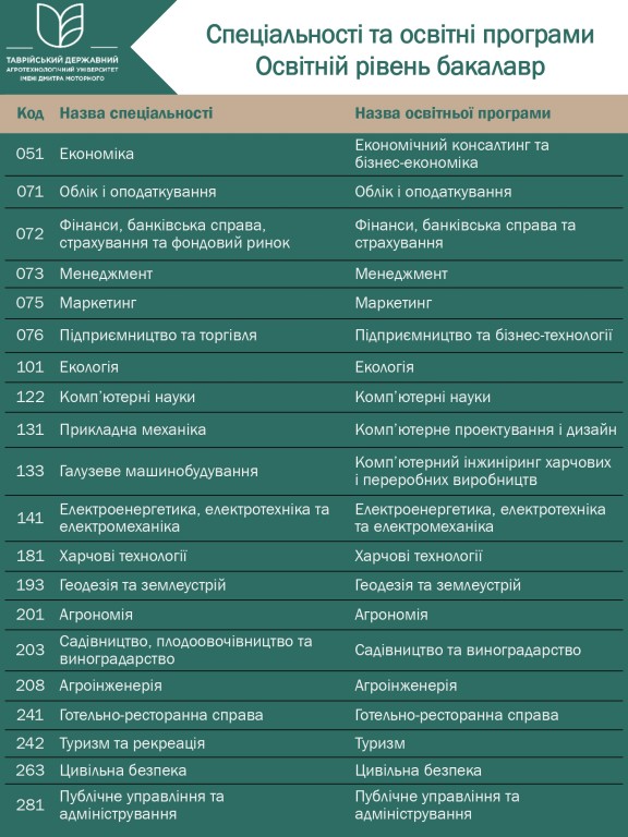 ТАВРІЙСЬКИЙ ДЕРЖАВНИЙ АГРОТЕХНОЛОГІЧНИЙ УНІВЕРСИТЕТ ІМЕНІ ДМИТРА МИРНОГО ЗАПРОШУЄ