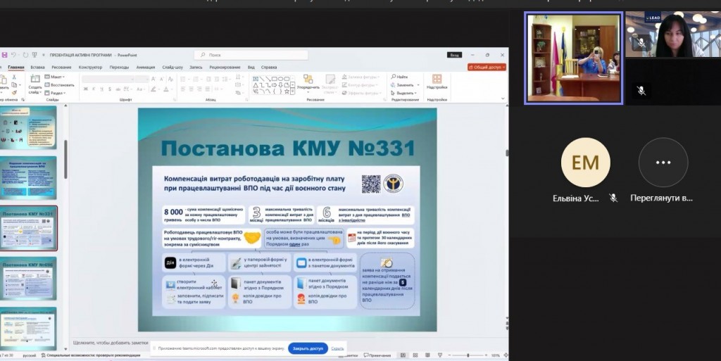 📅 Сьогодні Регіональним офісом Програми «U-LEAD з Європою» в Запорізькій області та Запорізькою районною філією Запорізького обласного центру зайнятості було проведено інформаційну сесію для спеціалістів органів місцевого самоврядування на тему: «Діючі Державні програми зайнятості: компенсації для роботодавців, гранти для розвитку та створення власного бізнесу ветеранів та ВПО, ваучери на навчання», учасником якої став фахівець нашої Кам’янсько-Дніпровської міської ради.
