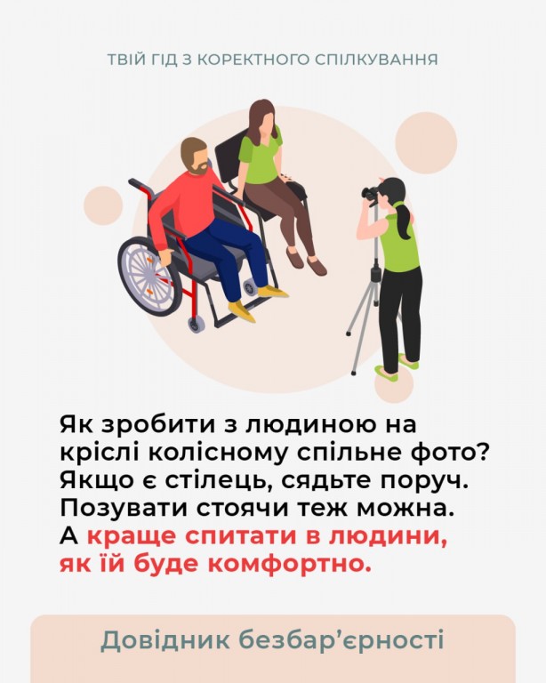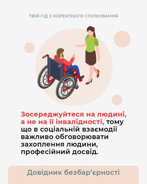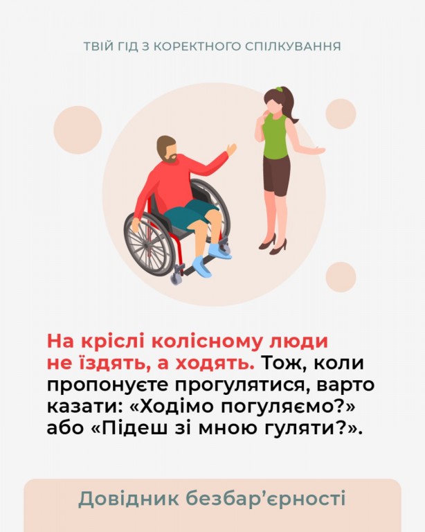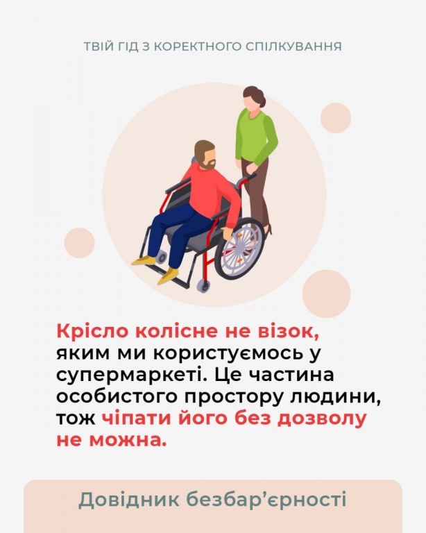 ЯК КОРЕКТНО ВЗАЄМОДІЯТИ З ЛЮДЬМИ, ЯКІ КОРИСТУЮТЬСЯ КРІСЛОМ КОЛІСНИМ