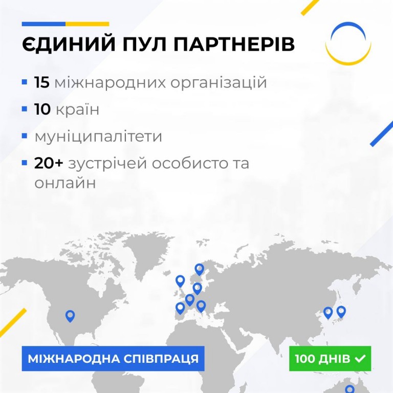 ✅ За 100 днів ми сформували єдиний пул партнерів. Провели понад 20 особистих зустрічей і щотижня взаємодіємо онлайн.