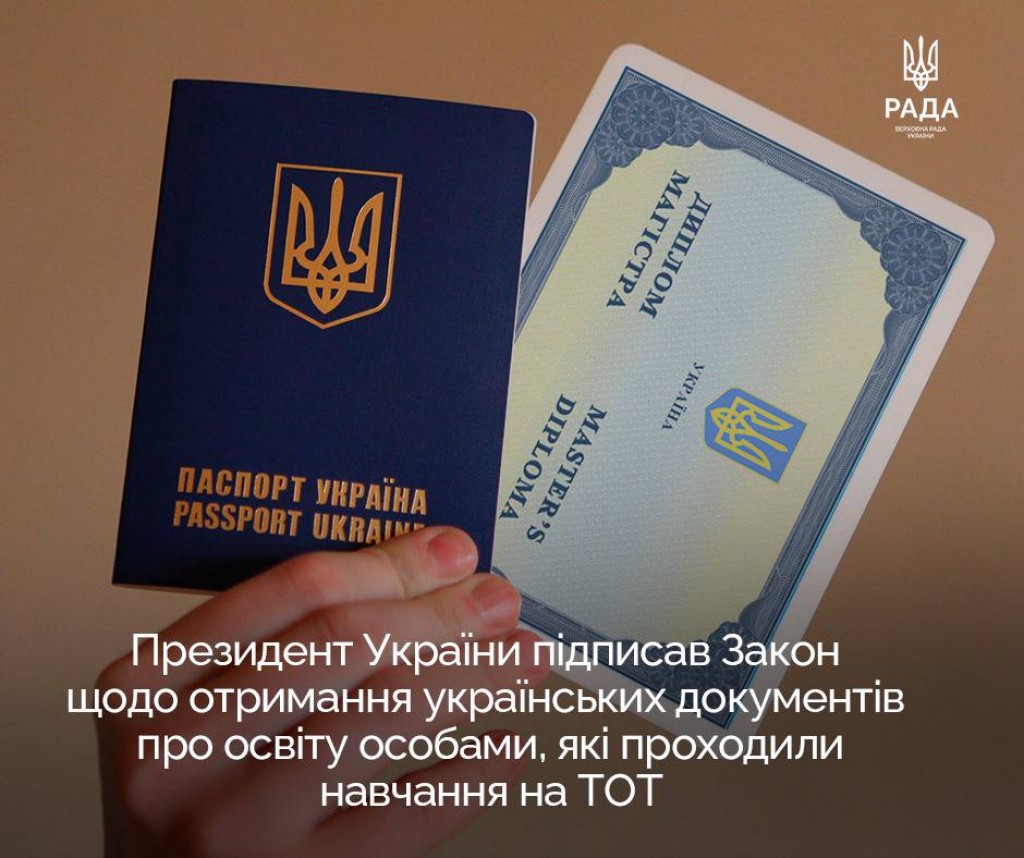 21 грудня 2023 року Президент України підписав Закон України «Про внесення змін до деяких законів України щодо визнання результатів навчання осіб, які проживають на тимчасово окупованій території України». Акт прийнято з метою забезпечення безперешкодної реалізації громадянами України, які проживають на тимчасово окупованій території України, права на продовження освіти шляхом…