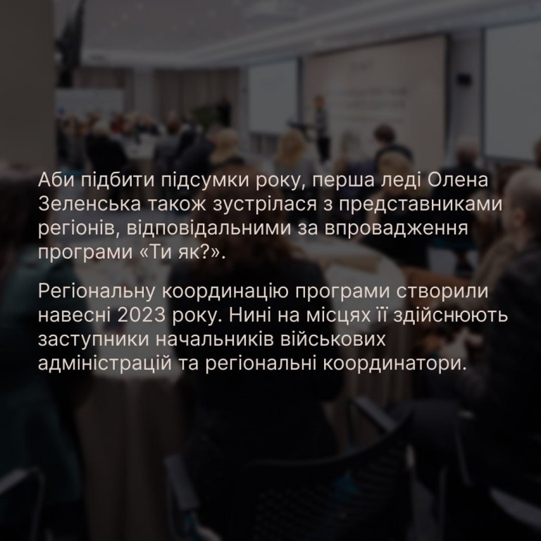 Аби підбити підсумки року, перша леді Олена Зеленська також зустрілася з представниками регіонів України, відповідальними за впровадження Всеукраїнської програми ментального здоров’я «Ти як?». Більше про висновки та головні задачі на наступний рік — на сайті Президента…
