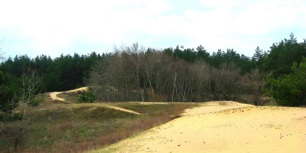 ❓Як же утворилися ці піщані схили в нашій степовій місцевості? Високі схили з’явилися ще в льодовиковий період. Саме рух льодовика залишив після себе такі форми рельєфу. А тала вода нанесла багато піску, глини та щебеню. Так утворилися високі горби і дюни на річкових терасах. Та це не була пустеля. Біля підніжжя кучугур текла річка Конка. Місцевість заростала непролазними очеретами та верболозами. Було тут чимало озерець і боліт. Усе це створювало густі плавні.