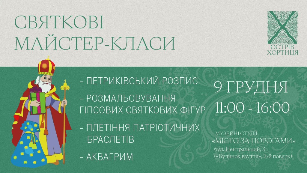 НАЦІОНАЛЬНИЙ ЗАПОВІДНИК «ХОРТИЦЯ» ЗАПРОШУЄ НА СВЯТКОВІ МАЙСТЕР-КЛАСИ ДЛЯ ДІТЕЙ ТА ДОРОСЛИХ