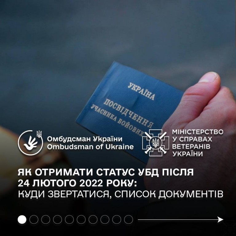 В Україні від серпня цього року діє спрощений порядок отримання статусу учасника бойових дій. 📌Хто має право на статус УБД?📌Як отримати УБД під час війни?📌Як отримати УБД після звільнення?📌Як отримати УБД добровольцю?📌Хто має право на статус ветерана війни?📌Хто належить до учасників війни? Відповіді на ці питання в інфографіці. Омбудсман Лубінець…