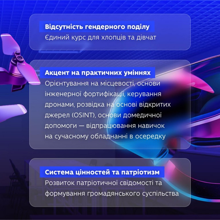 ⏰ Викладатимуть оновлений предмет раз на місяць. У навчанні використовуватимуть симулятори дронів, лазерні тири, тренажери для надання домедичної допомоги.