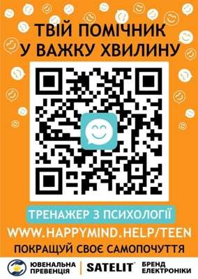 👫У межах співпраці між управлінням ювенальної превенції та благодійної організації «Благодійний фонд «ХепіМайндХелп»», створено онлайн-тренажер «Психологічний тренажер для підлітків».Запропоновані тренувальні вправи мають профілактичний ефект для самостійного поліпшення психологічного здоров'я.Рекомендований вік для самостійного використання підлітками -…