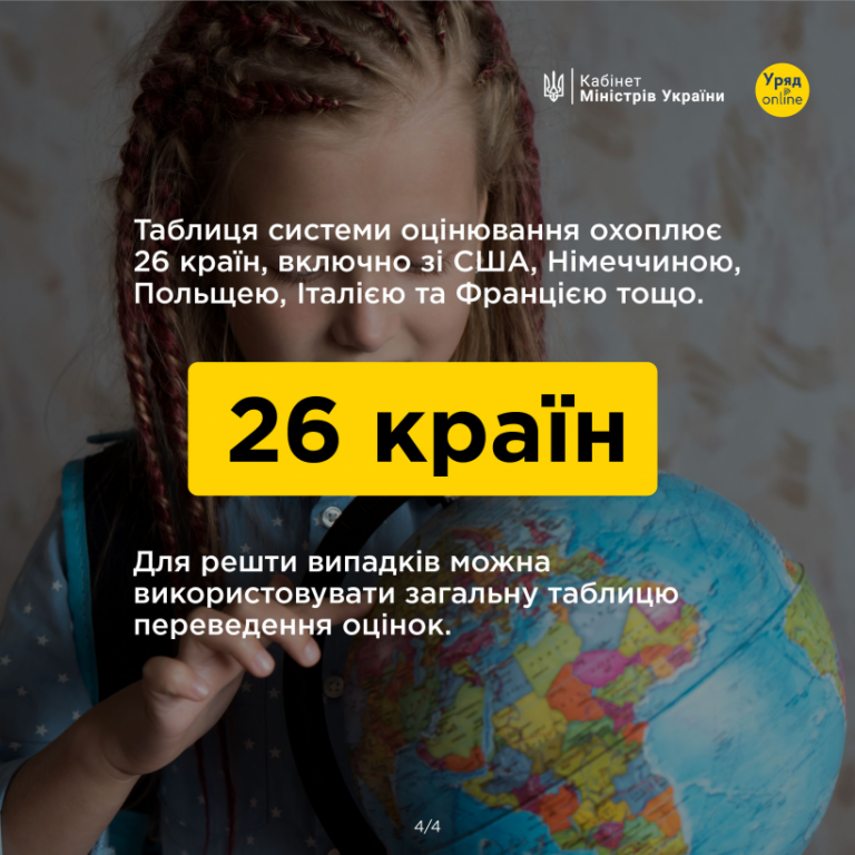 Міністерство освіти і науки України ввело шкалу, яка уніфікує системи оцінювання різних країн з українською 12-бальною системою. Це нововведення допоможе учням безперебійно продовжити навчання в Україні після повернення.