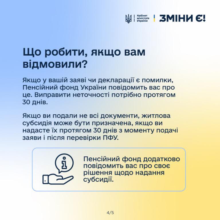 👉 Детальніше про те, куди звернутись для оформлення субсидії, та що робити, якщо вам відмовили – дивіться в інфографіці.