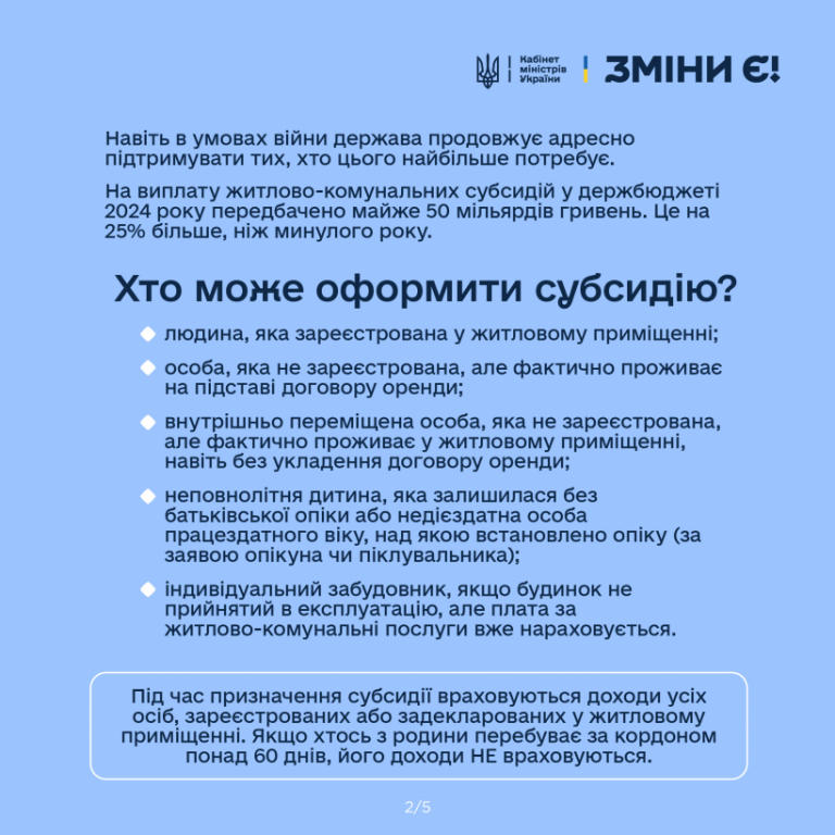 🟡 Навіть в умовах війни держава продовжує адресно підтримувати тих, хто цього найбільше потребує. Зараз діє спрощений механізм звернення за житловою субсидією, без збирання довідок і витрачання часу на заповнення декларації.