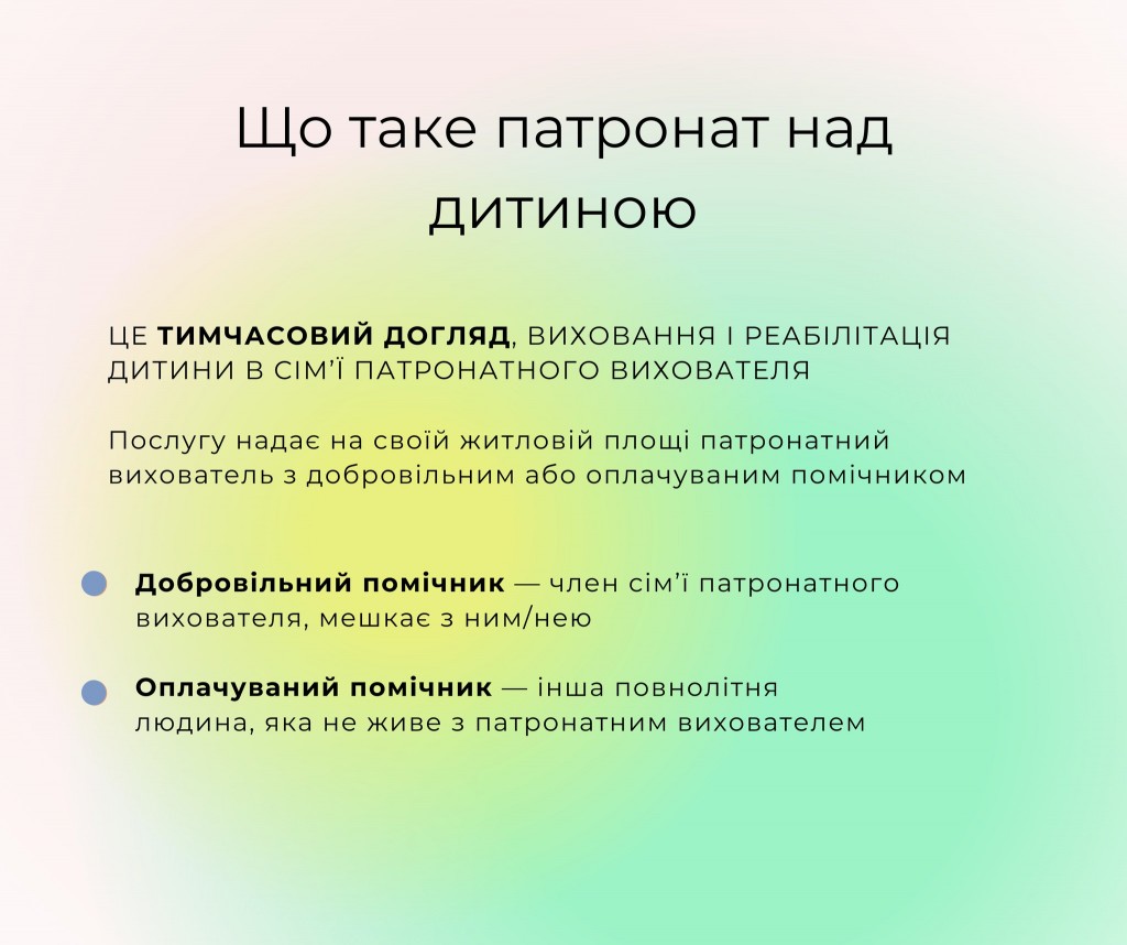 👫 Патронат над дитиною - це послуга в громадах, завдяки якій діти залишаються в сімейному середовищі навіть тоді, коли батьки з тих чи інших причин тимчасово не можуть про них піклуватися.