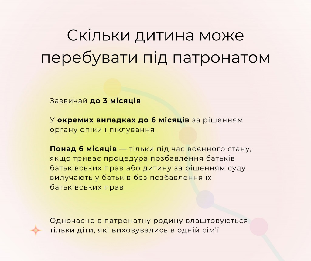 👧 І навіть якщо дитина більше не може жити з біологічною родиною (у разі позбавлення батьків батьківських прав або, на жаль, у разі їхньої загибелі через російську війну) вона перебуває в патронатній сім’ї, поки для неї шукають опікуна, прийомну сім’ю тощо.