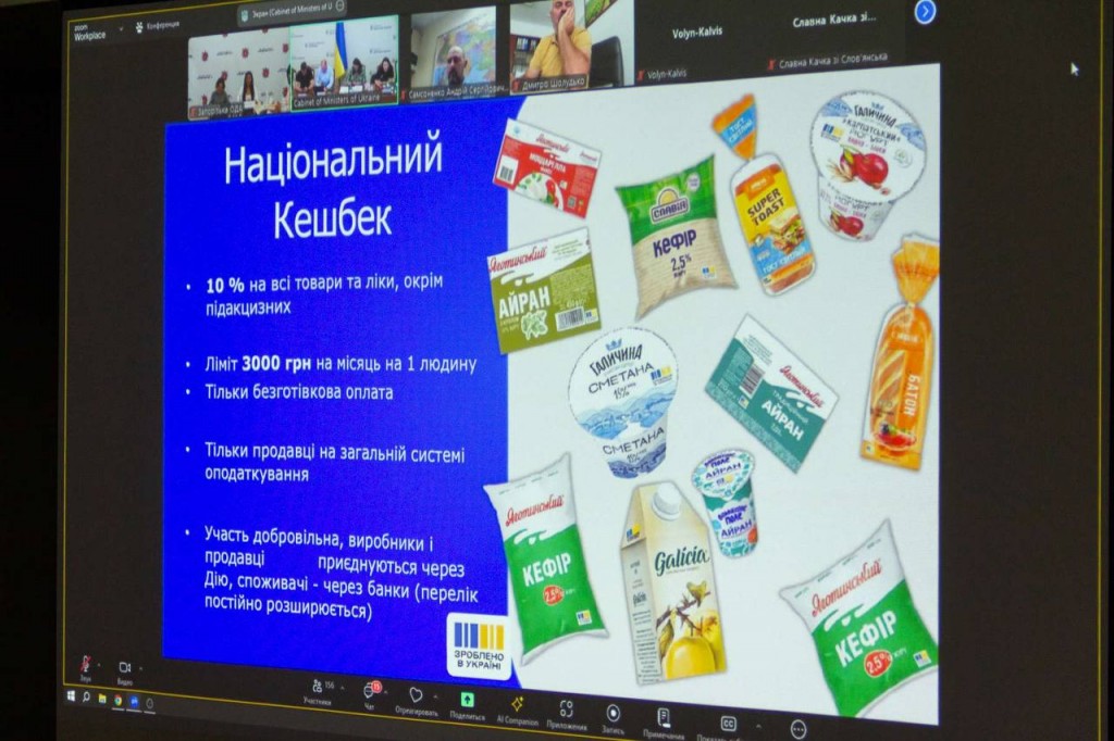 – Вкрай важливо спонукати громадян підтримувати вітчизняні товари. Це – і робочі місця для українців, і поповнення бюджету, і додаткові кошти для підтримки сектору безпеки та оборони. Сьогодні нам разом із представниками бізнесу Уряд представив в рамках кампанії «Зроблено в Україні» ще один інструмент для такої промоції українських виробників – «Національний кешбек». Сподіваюся, до цієї урядової ініціативи долучиться якомога більше запорізьких виробників та суб'єктів рітейлу, – зазначила заступниця голови Запорізької ОДА Оксана Матвіїшина.