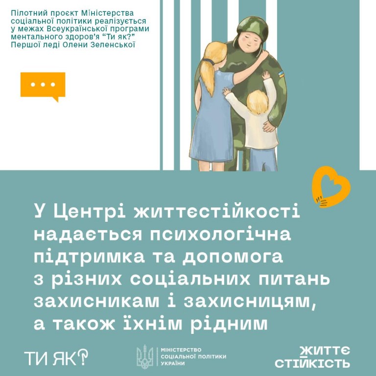 👉 Програма життєстійкості Мінсоцполітики є складовою Всеукраїнської програми ментального здоров'я “Ти як?” Першої леді Олени Зеленської.