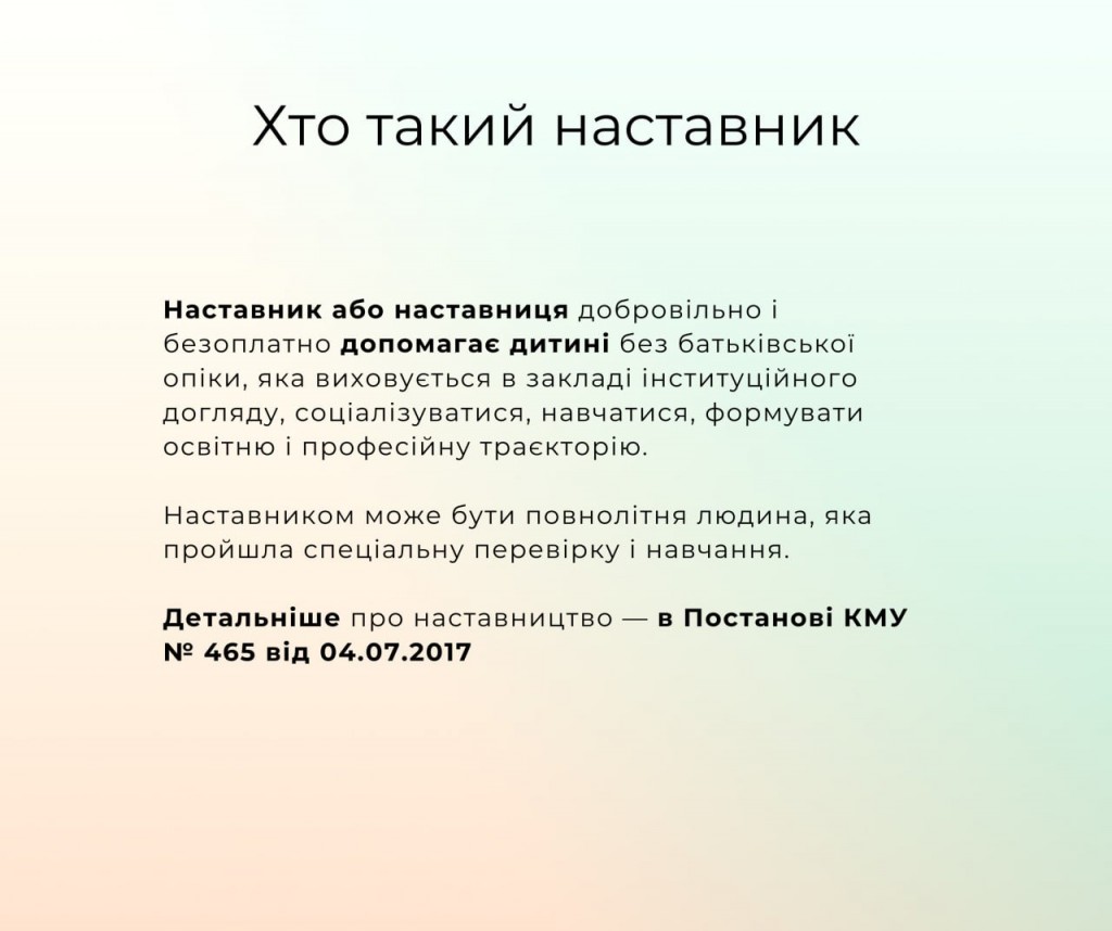 🙌 Головна потреба дітей без батьківського піклування, які виховуються в інституційних закладах, - це відчувати родинне тепло та підтримку. Але поки дитина не зустріла "свою” родину", їй потрібна надійна доросла людина поруч.