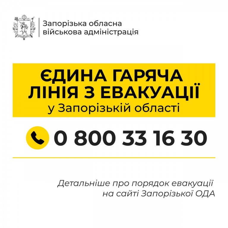 У ЗАПОРІЗЬКІЙ ОБЛАСТІ ПРАЦЮЄ ЄДИНА ГАРЯЧА ЛІНІЯ З ЕВАКУАЦІЇ