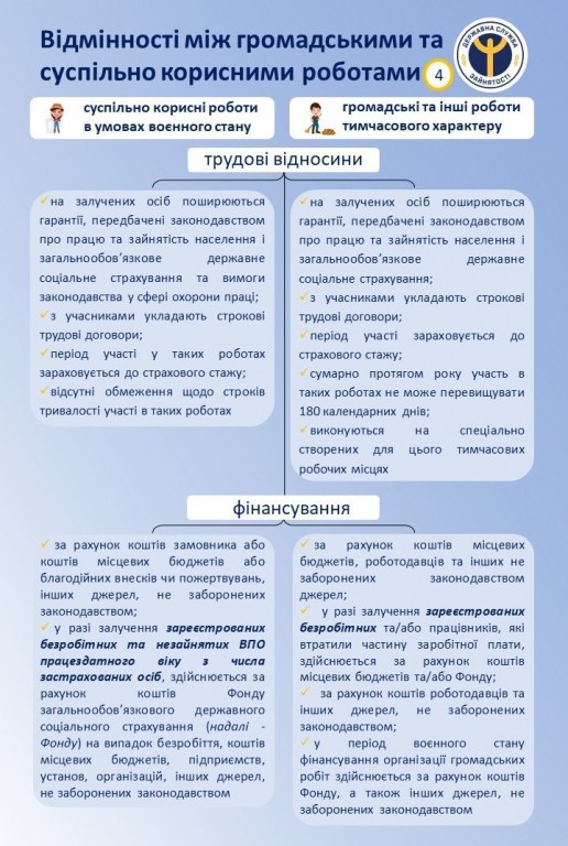 👆В інфографіці детально розглянуло усі відмінності між суспільно-корисними та громадськими роботами.