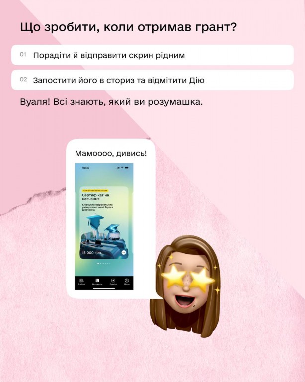 🎓 Студенти-контрактники, які вступили до ЗВО цього року, отримують сповіщення щастя від Дії — компенсацію за навчання. Гранти покриватимуть частину вартості контракту на весь період навчання щорічно.
