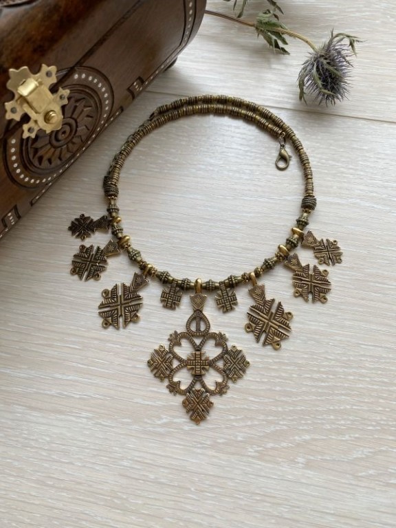 Металеві буси, що перемежовувались з коралами. Вони разом з ланцюжком та хрестиком врівноважували великі дукачі. Хрестики виготовляли зі срібла (заможні носили золоті) та інколи вкривали емаллю. Носили їх на довгих ланцюжках або вузьких оксамитових стрічках.