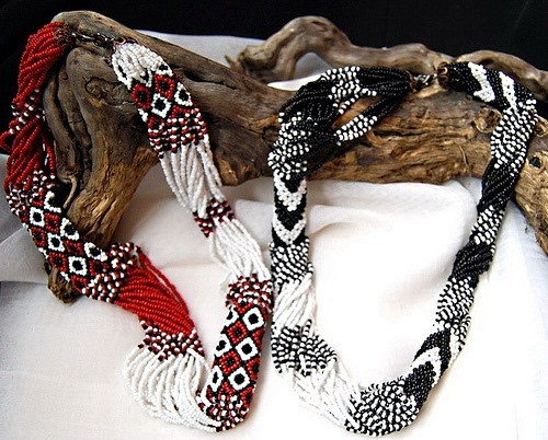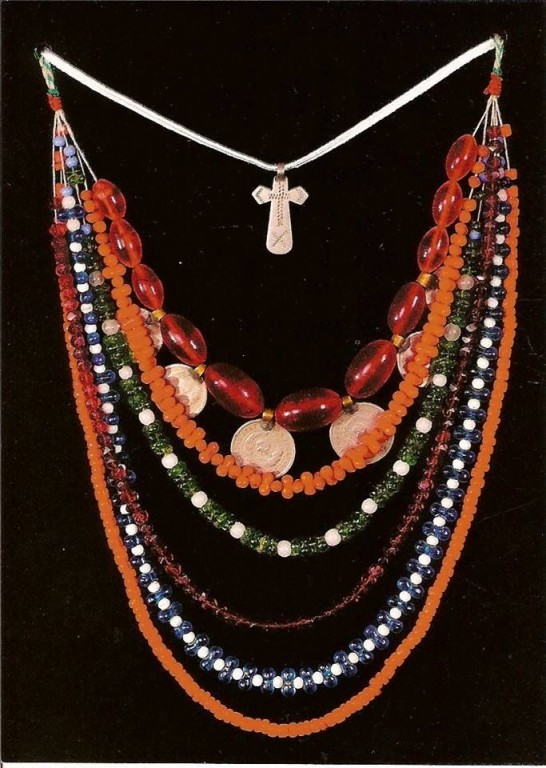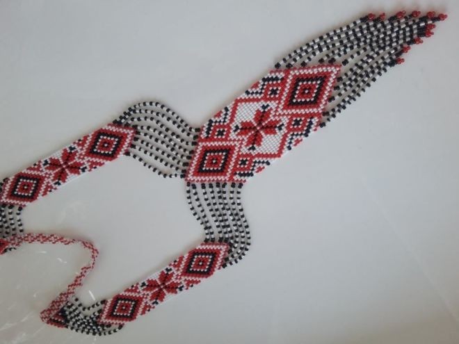 Прикраси з бісеру у вигляді петлі з двох смужок, з’єднаних медальйоном на рівні сонячного сплетіння. Цю прикрасу носили як жінки, так і чоловіки (відрізнялись кольорами бісеру та візерунками).