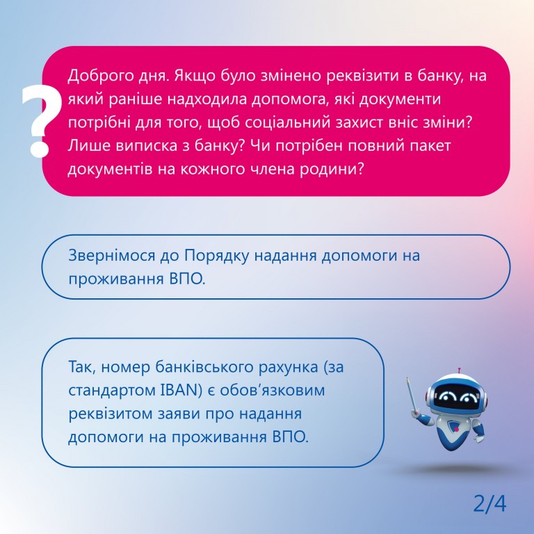 ❓Зокрема на таке питання: чи потрібно переподавати повний пакет документів на призначення допомоги, якщо в уповноваженої особи від сім'ї змінилися банківські реквізити?