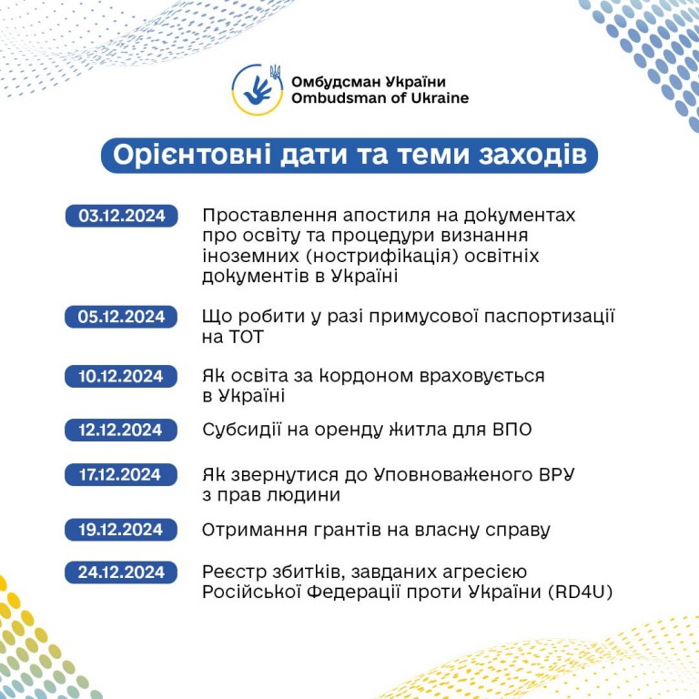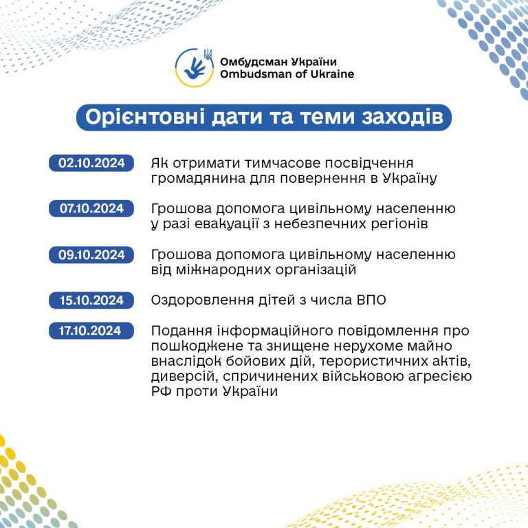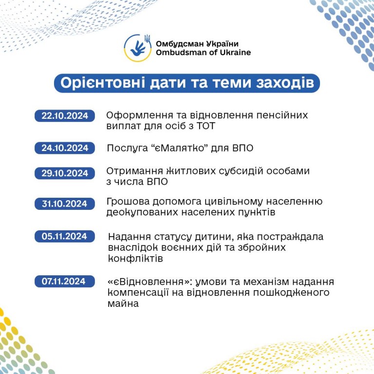 📅 На вас чекають виступи представників міністерств та громадських організацій про практичні можливості у різних сферах. Також ви матимете змогу поставити запитання. На них відповідатимуть працівники Офісу Омбудсмана.