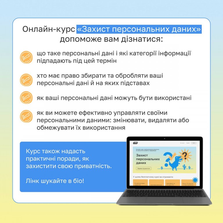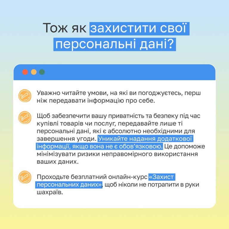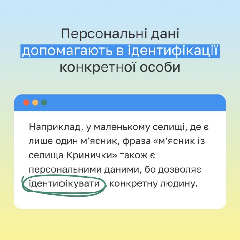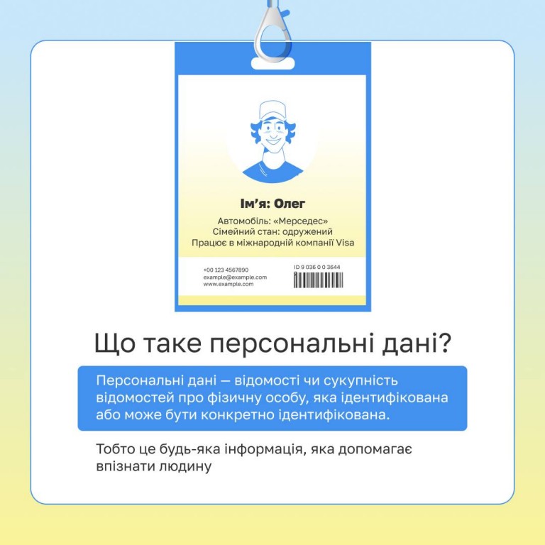 👉 Більше про персональні дані розповідається 👆в інфографіці та 🎥онлайнкурсі «Захист персональних даних» (https://study.ed-era.com/uk/courses/course/371https://study.ed-era.com/uk/courses/course/371), який створили Офіс Омбудсмана, Рада Європи та EdEra.