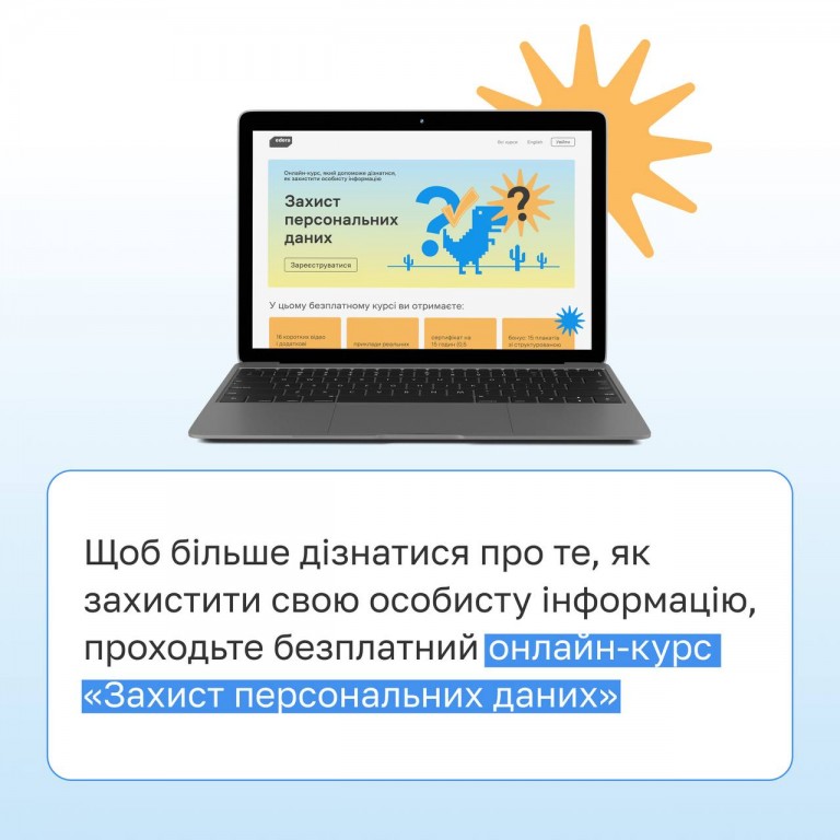 🎥 Щоб більше знати про свої права та вміти захищати персональні дані, проходьте онлайн-курс «Захист персональних даних» (https://study.ed-era.com/uk/courses/course/371) від Ради Європи, Офісу Омбудсмана України та EdEra.