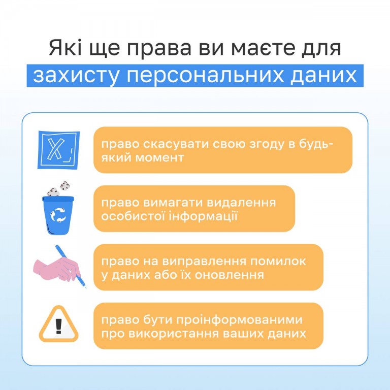 🔺Окрім цього, у будь-який момент ви можете скасувати свою згоду на використання вашої особистої інформації, вимагати її видалення або ж виправити помилки в даних чи оновити їх.