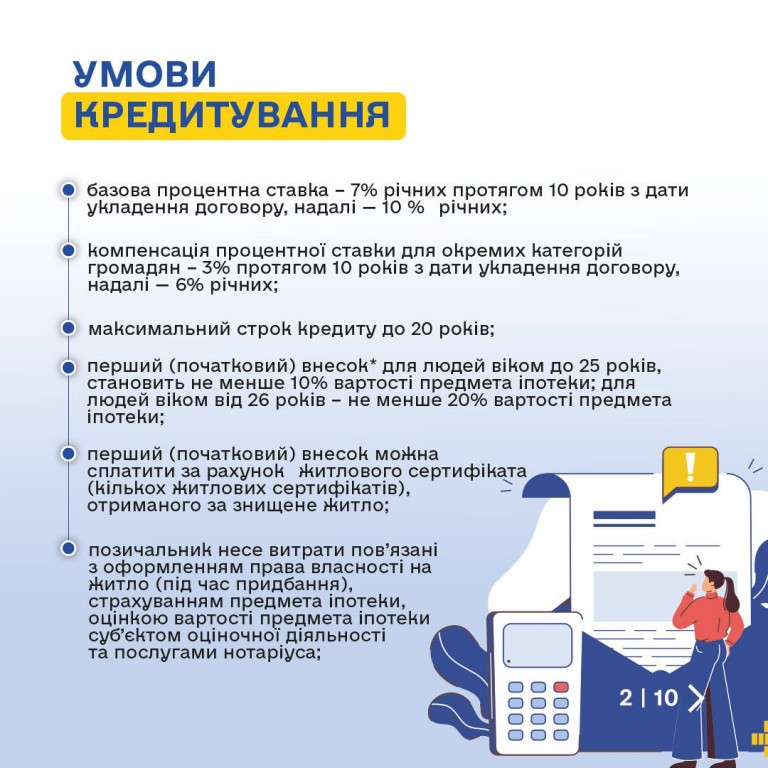 🗂Інфографіка детально пояснює умови кредитування, категорії осіб, які мають право на участь, вимоги до житла та інші важливі аспекти.