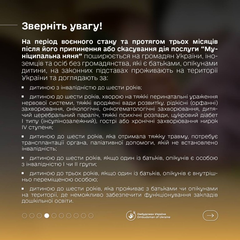 📅 Під час воєнного стану і ще три місяці після його завершення послуга доступна громадянам України, іноземцям та особам без громадянства, які доглядають за дитиною до шести років.