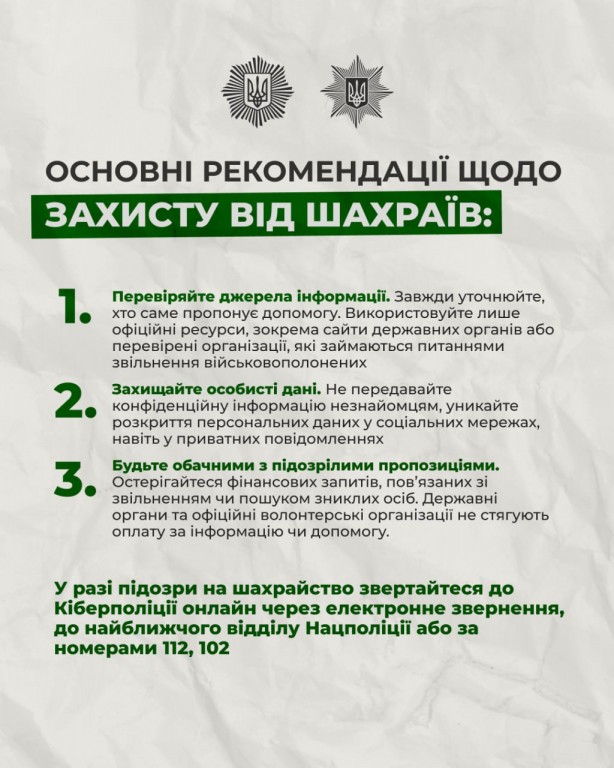 Зловмисники використовують емоційний стан людей, що шукають близьких, видаючи себе за волонтерів, журналістів, представників державних органів та організацій. Шахраї намагаються отримати гроші або конфіденційну інформацію.