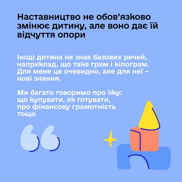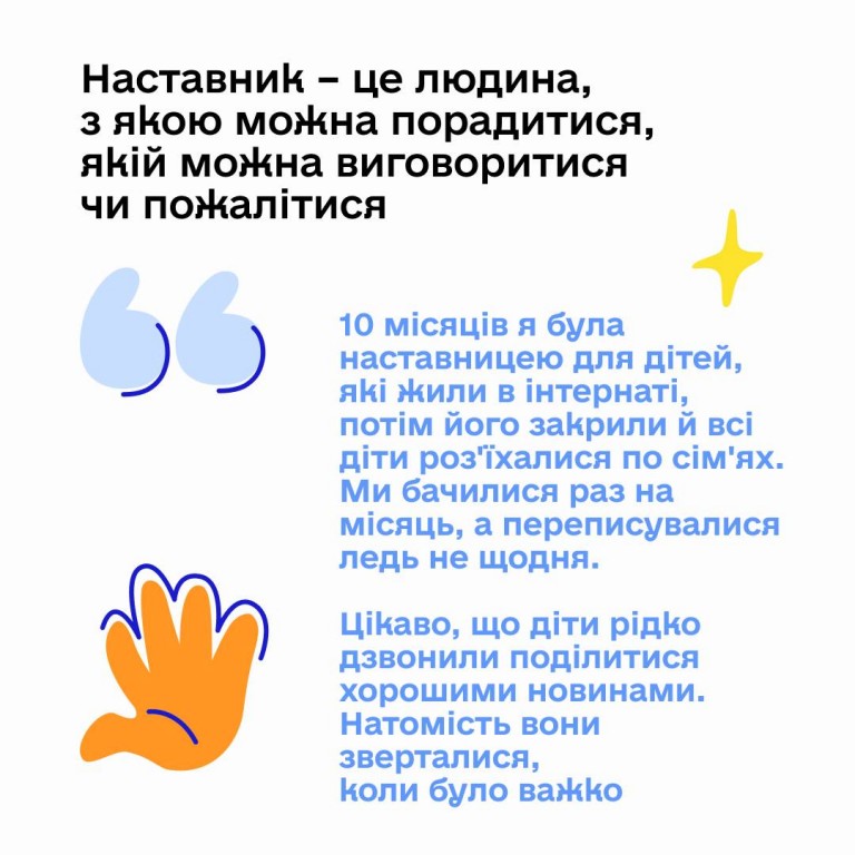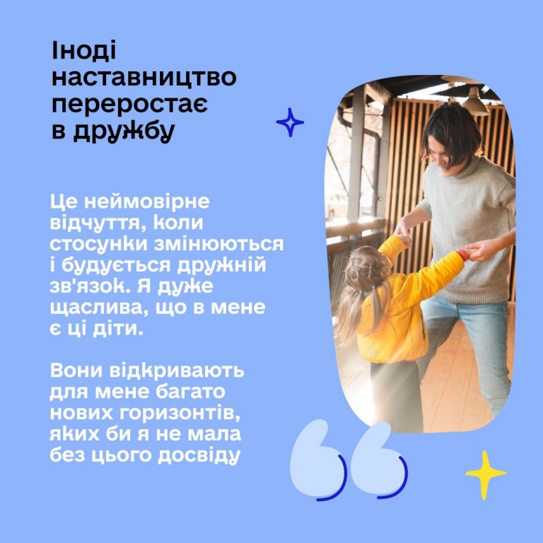 👫 Щоб стати наставником, не потрібно мати багато вільного часу чи суперздібності. Потрібно просто мати бажання допомогти, пройти навчання і стати опорою для дитини, яка цього потребує.