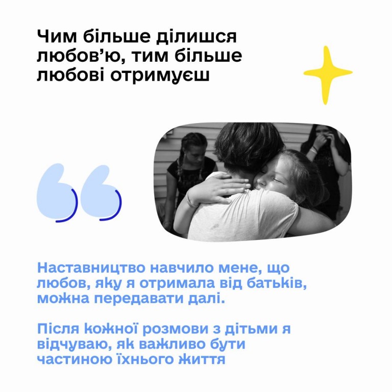 🔵 Наставництво – це можливість підтримати дитину, яка залишилася без турботи батьків. Стати для неї другом та людиною, якій можна довіритися.