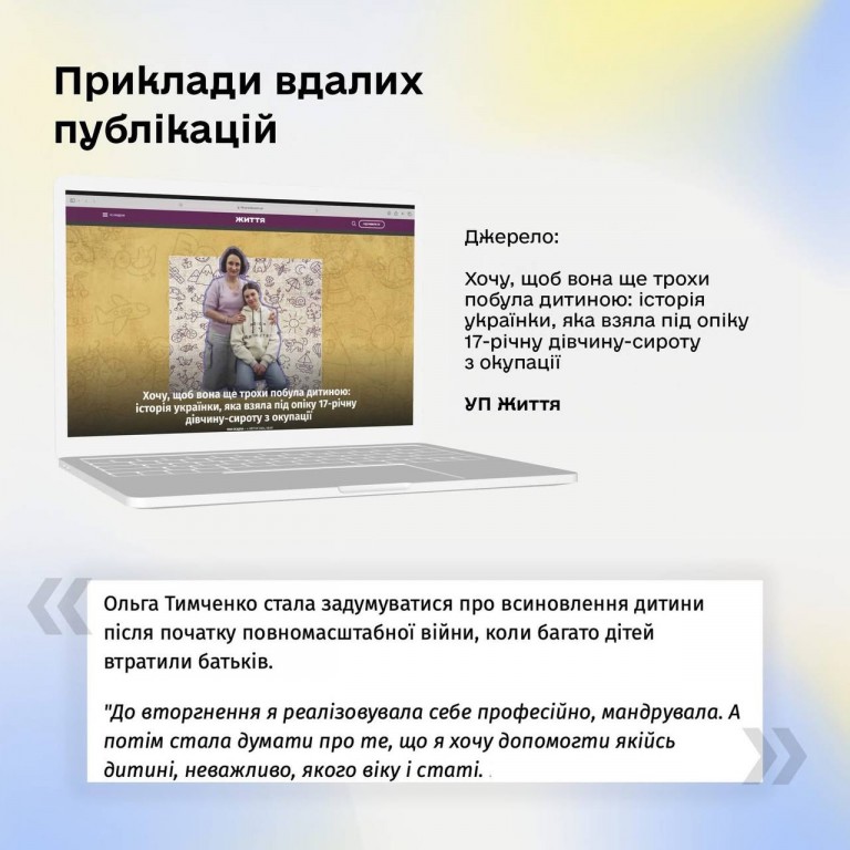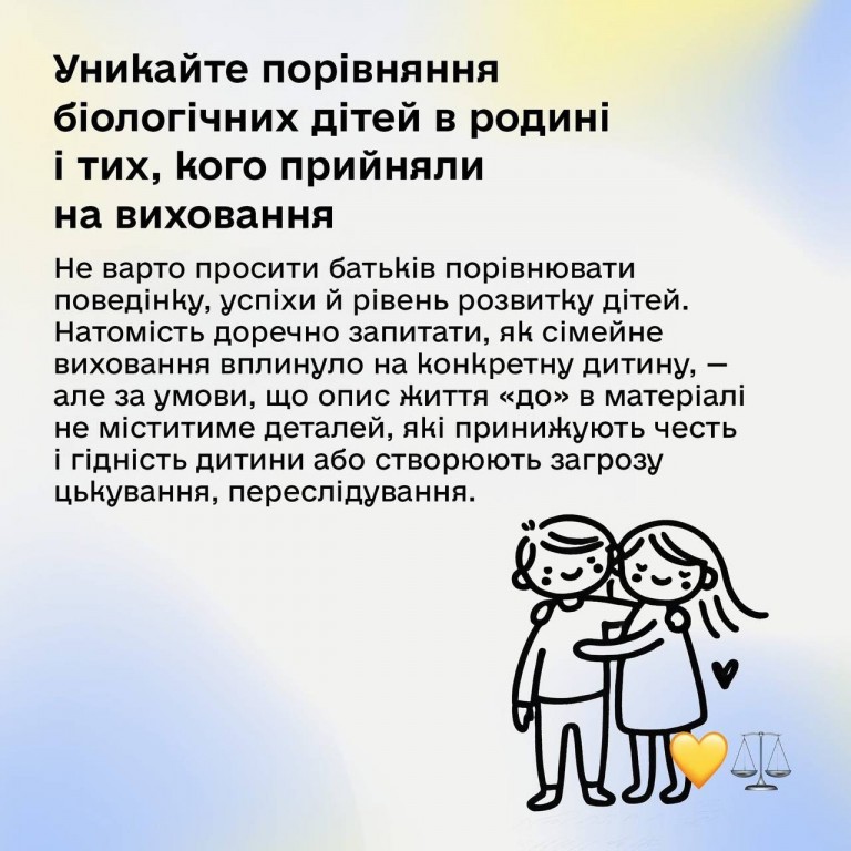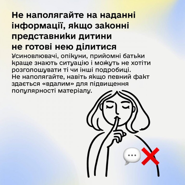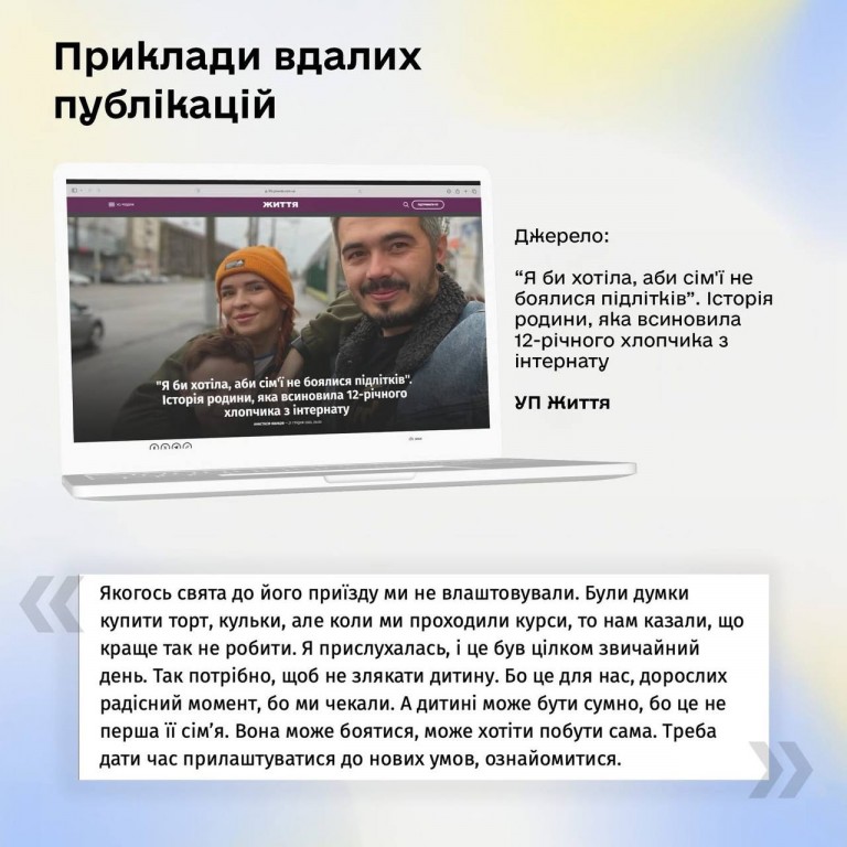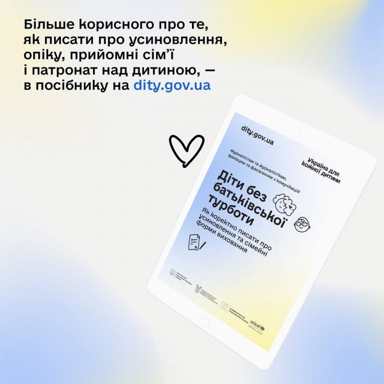 📖Щоб уникнути таких ситуацій було розроблено посібник «Діти без батьківської турботи: як коректно і етично писати про усиновлення і сімейні форми виховання».
