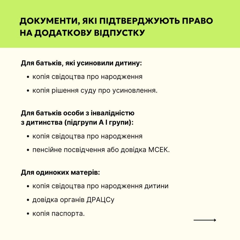 ❓Які є підстави для додаткової соціальної відпустки та як її оформити - у картках.
