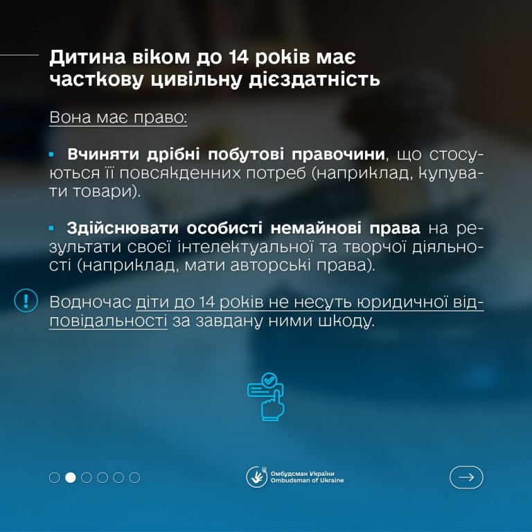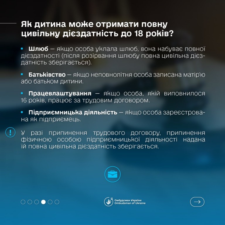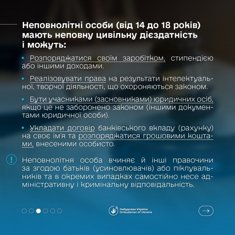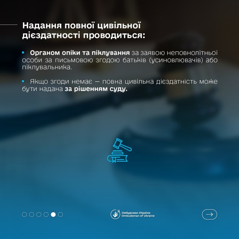 🇺🇦 Омбудсман України Дмитро Лубінець повідомив, що в Україні цей процес відбувається поступово: спочатку дитина має часткову цивільну дієздатність, а з досягненням певного віку набуває повної - і може нести відповідальність за свої дії і рішення.