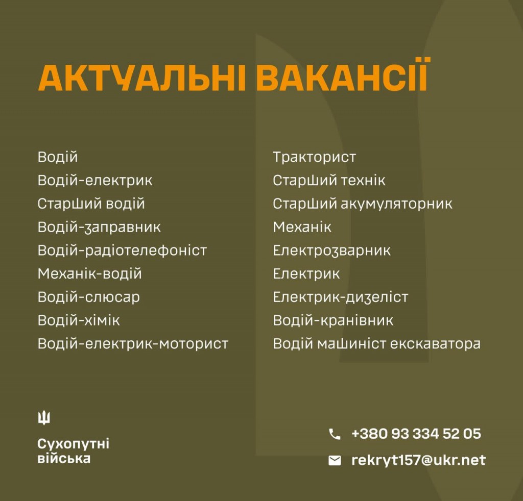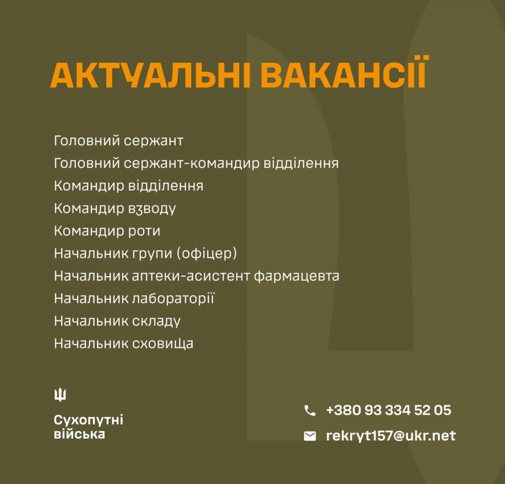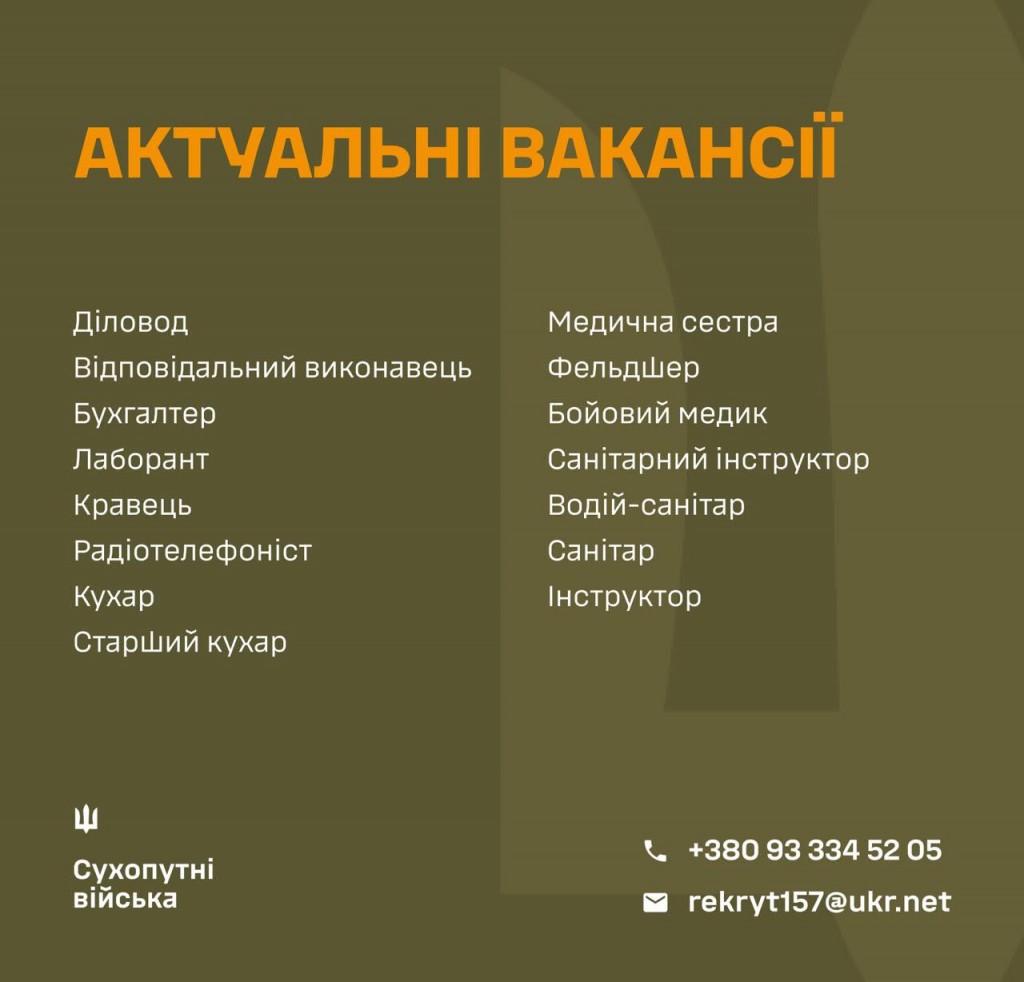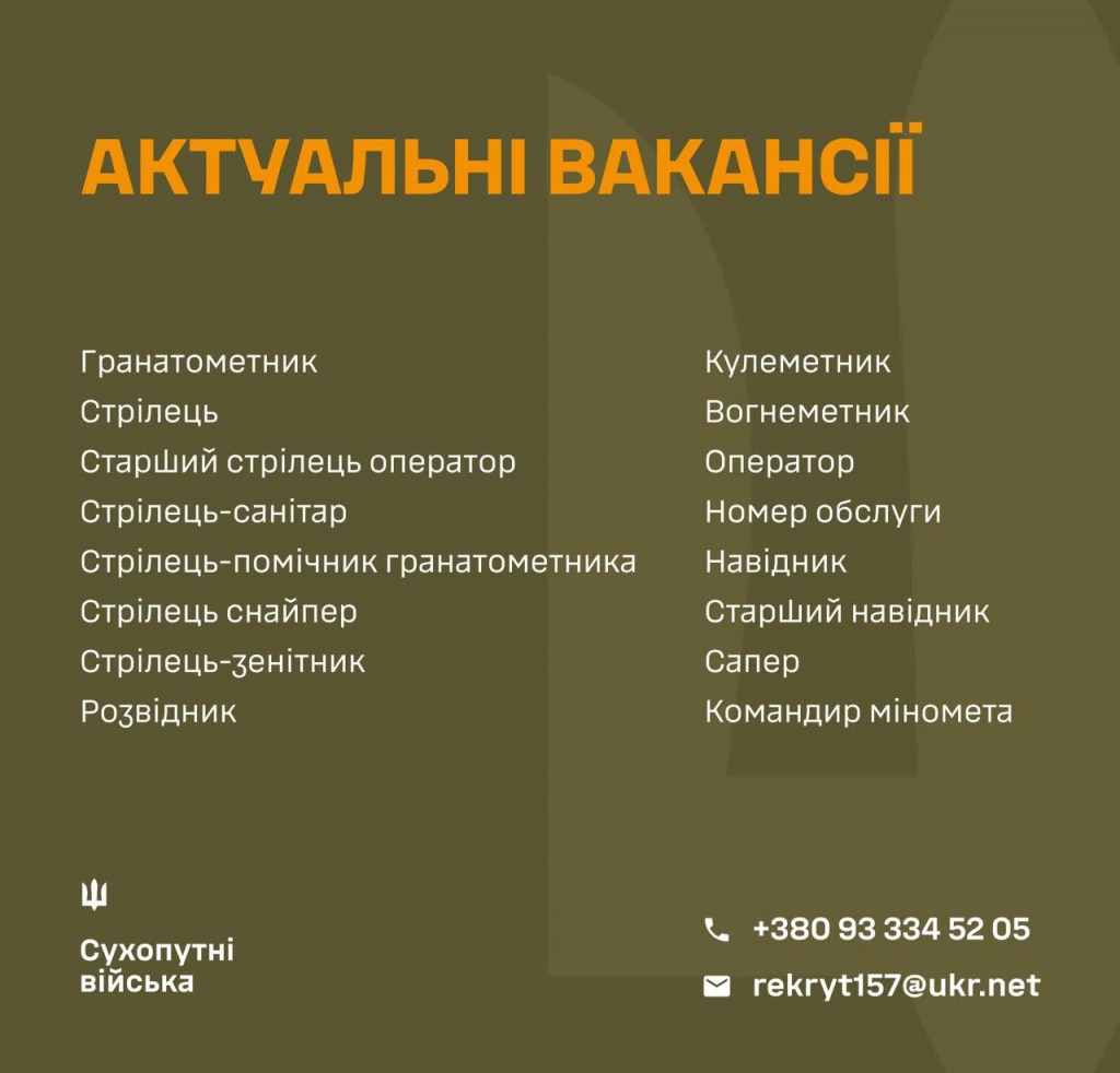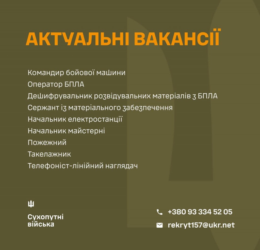 💪ЗРОБИ СВІЙ ВНЕСОК У ПЕРЕМОГУ: ОБИРАЙ ПОСАДУ В 157 ОМБр