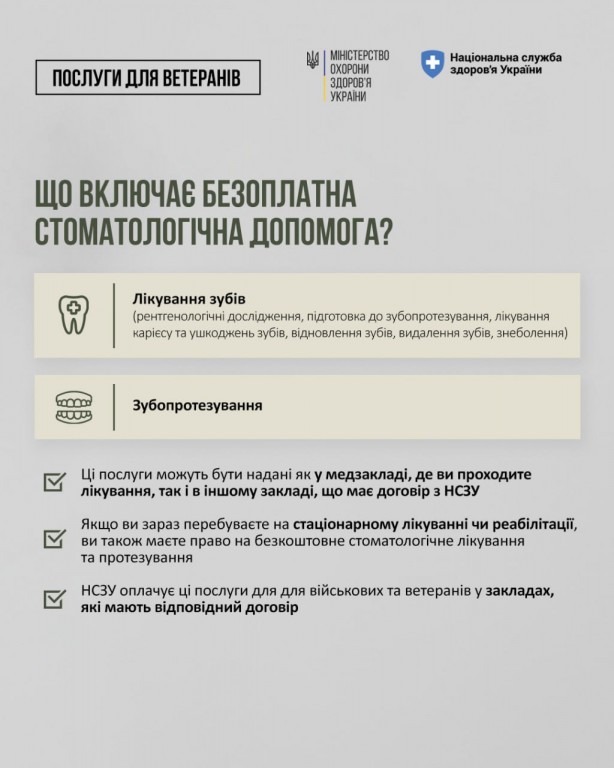 ВІЙСЬКОВІ ТА ВЕТЕРАНИ МОЖУТЬ БЕЗОПЛАТНО ЛІКУВАТИ ЗУБИ