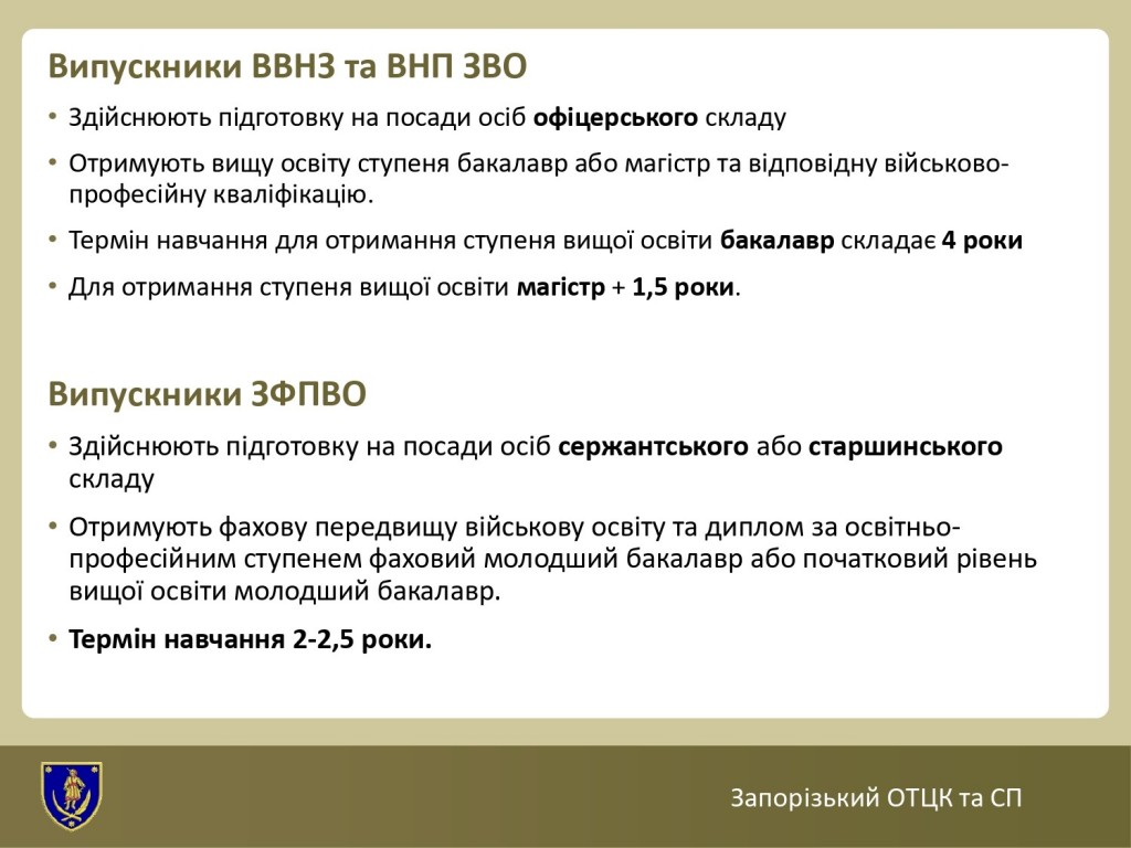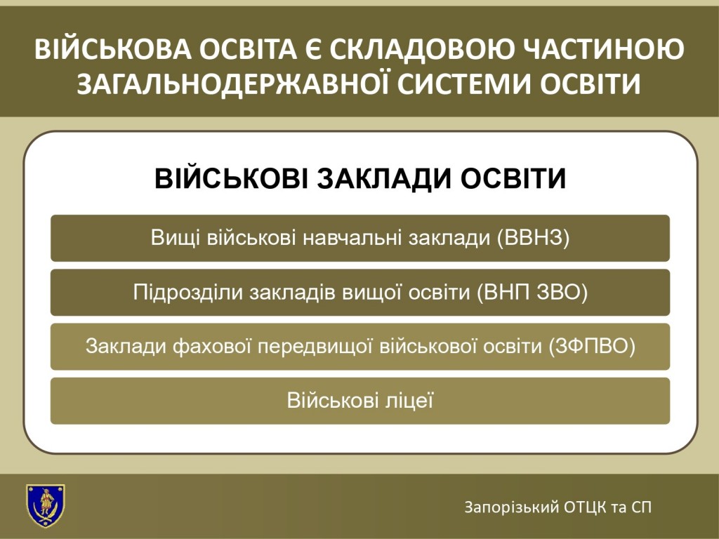 Військова освіта є складовою частиною загальнодержавної системи освіти.